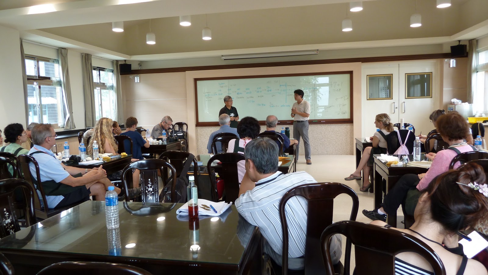 In between each session of processing our tea leaves, we went back to the classroom for more training on tea processing. It was there that we also cupped teas (professional way of tasting teas). I felt honored to be learning from the Head Tea Master in Taiwan. There is a five year wait for farmers to get into the training facility to learn from him! We also were able to sneak in a quick dinner in town during one of our wait times.